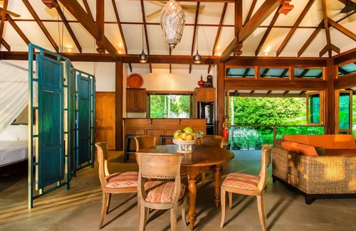 The villa is beautifully designed using lots of natural materials like wood and stone and intelligent architecture encourages plenty of natural ventilation throughout all areas of the villa which follows the eco concept of Koh Jum Beach Villas. When the large ceiling fans and natural breeze are not sufficient or if you do not like to sleep with the windows and doors open the air-conditioning will help cooling the bedroom spaces in the evening assuring you of a good nights rest.