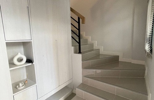Welcome to your home away from home @Central Rayong. Experience the charm of Rayong in our delightful three-floor townhouse, right next to Central Rayong Mall! Perfect for a family of 6, it features 3 bedrooms (2 rooms with queen beds and 1 room with 2 single beds), 2 convenient showers, and a handy toilet on second floor. Whip up family meals in the full kitchen. Free parking and 24/7 security. Plus, you're just a 2-minute stroll from both supermarket and a handy 7-11. Your cozy getaway awaits!