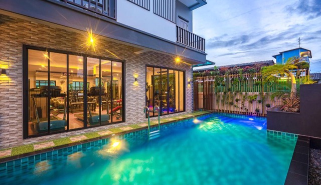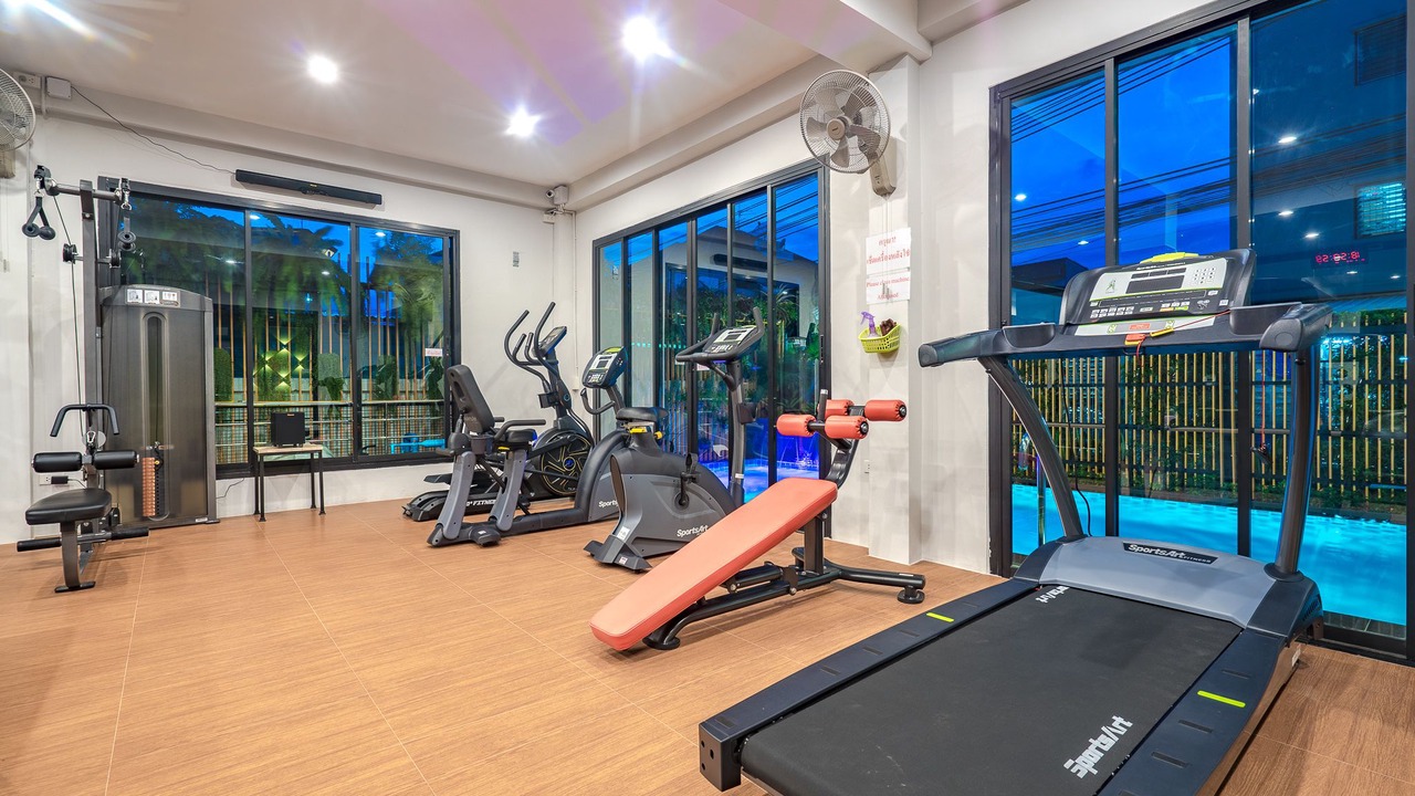 An outdoor pool and a children's pool are on site. Other recreational amenities include a 24-hour fitness center.